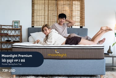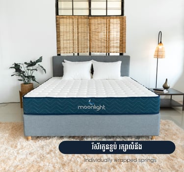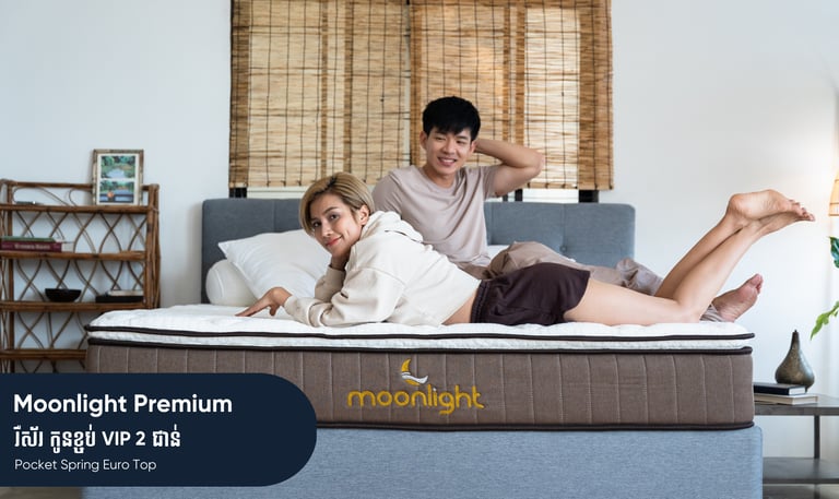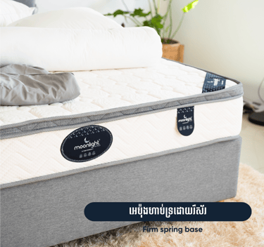 Moonlight Premium Pocket Spring features 868 individually-pocketed spring coils to bring you ultimate breathability and comfort, and a high-performance soft pillow-top to support the contour of your body, relieving body pressure, and bringing you endless comfortable sleeps.